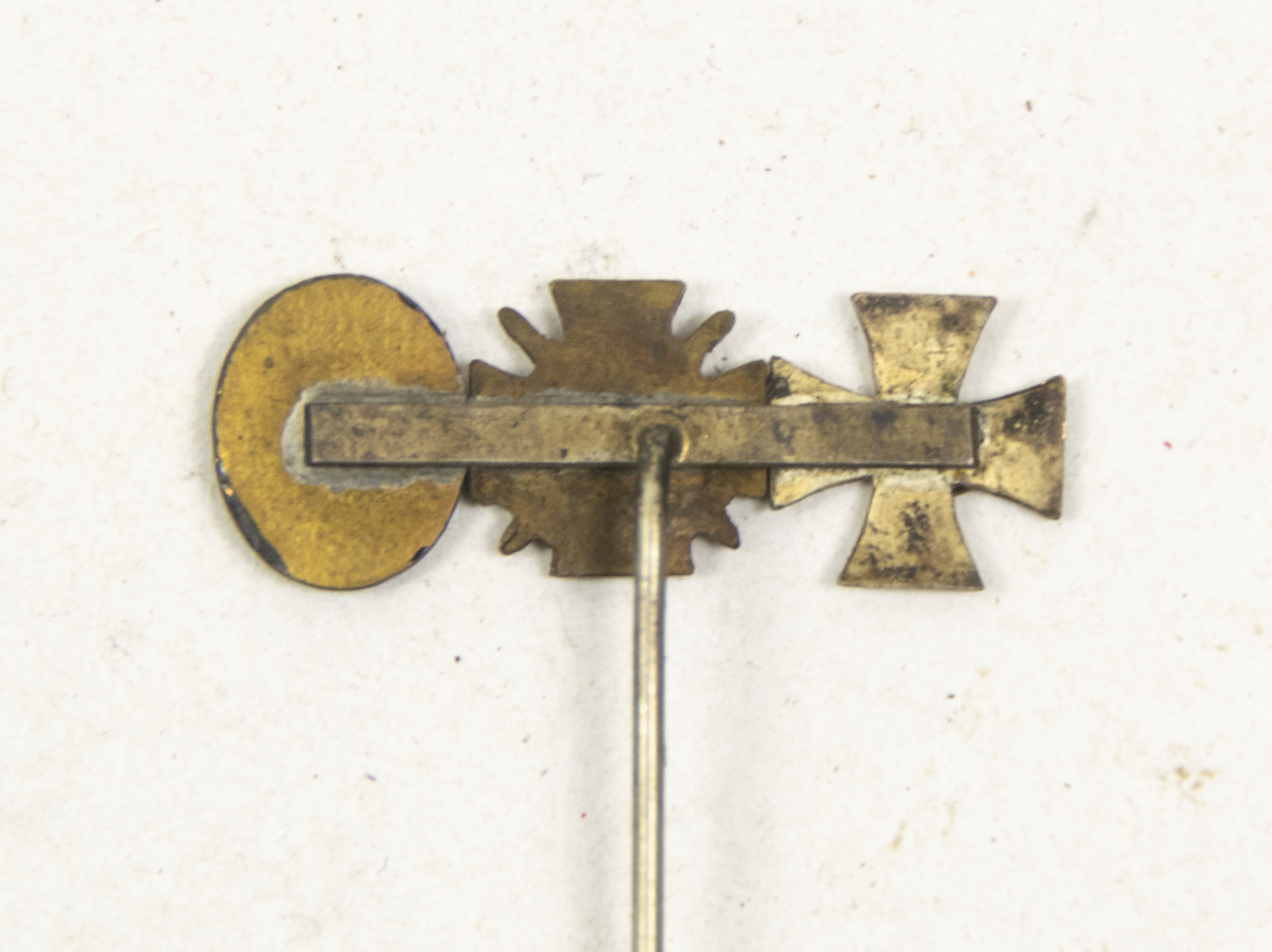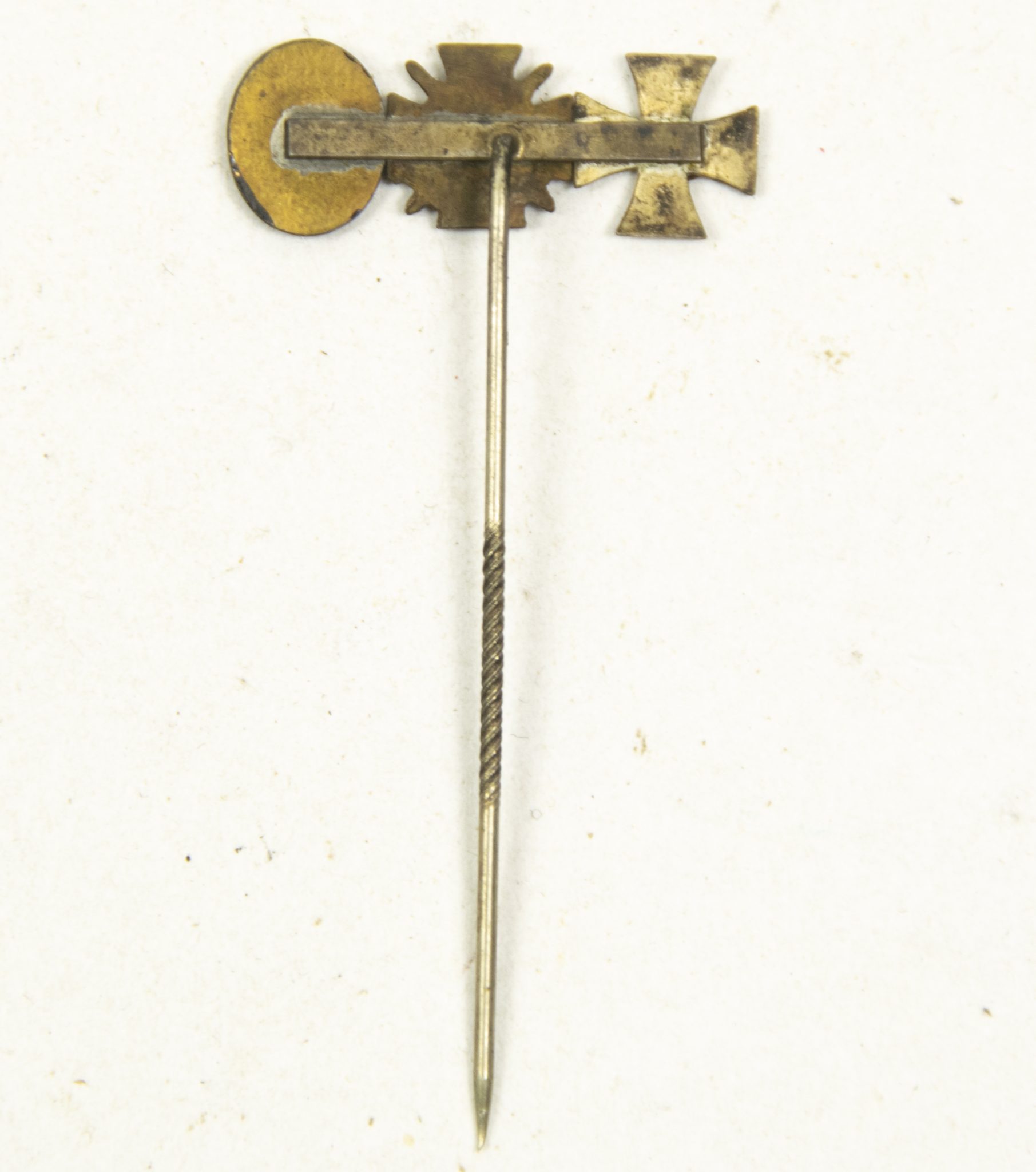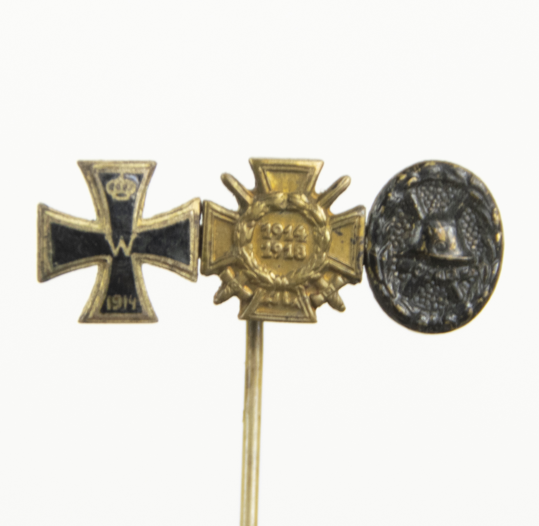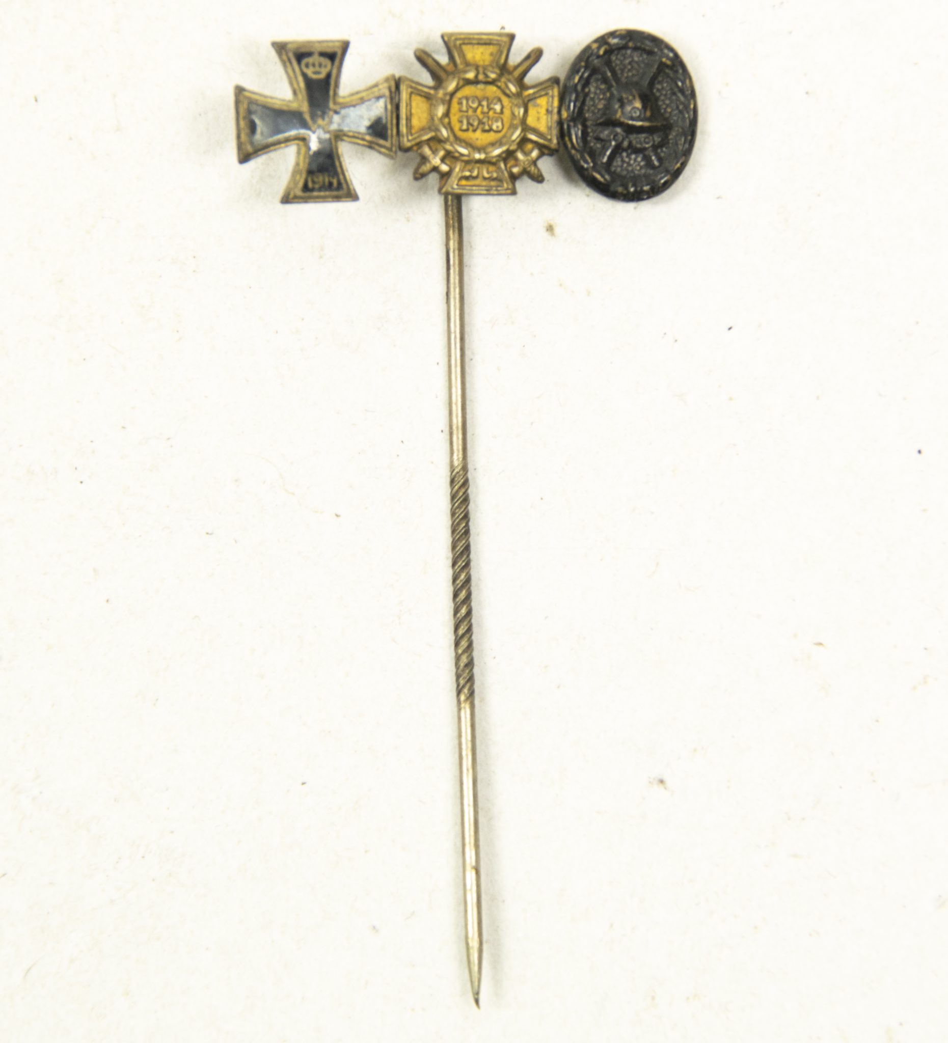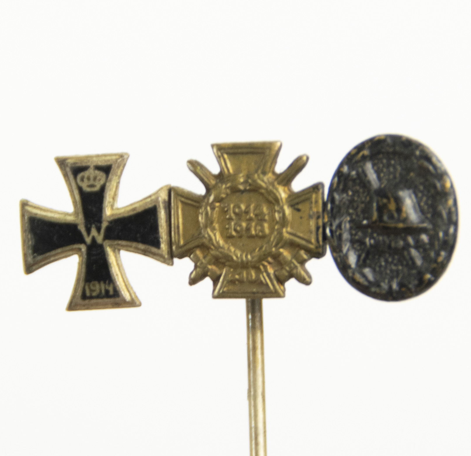 Category: Imperial German Medals Tag: German WWI lapel stickpin with Ek2 + Frontkämpfer Ehrenkreuz + Black woundbadge