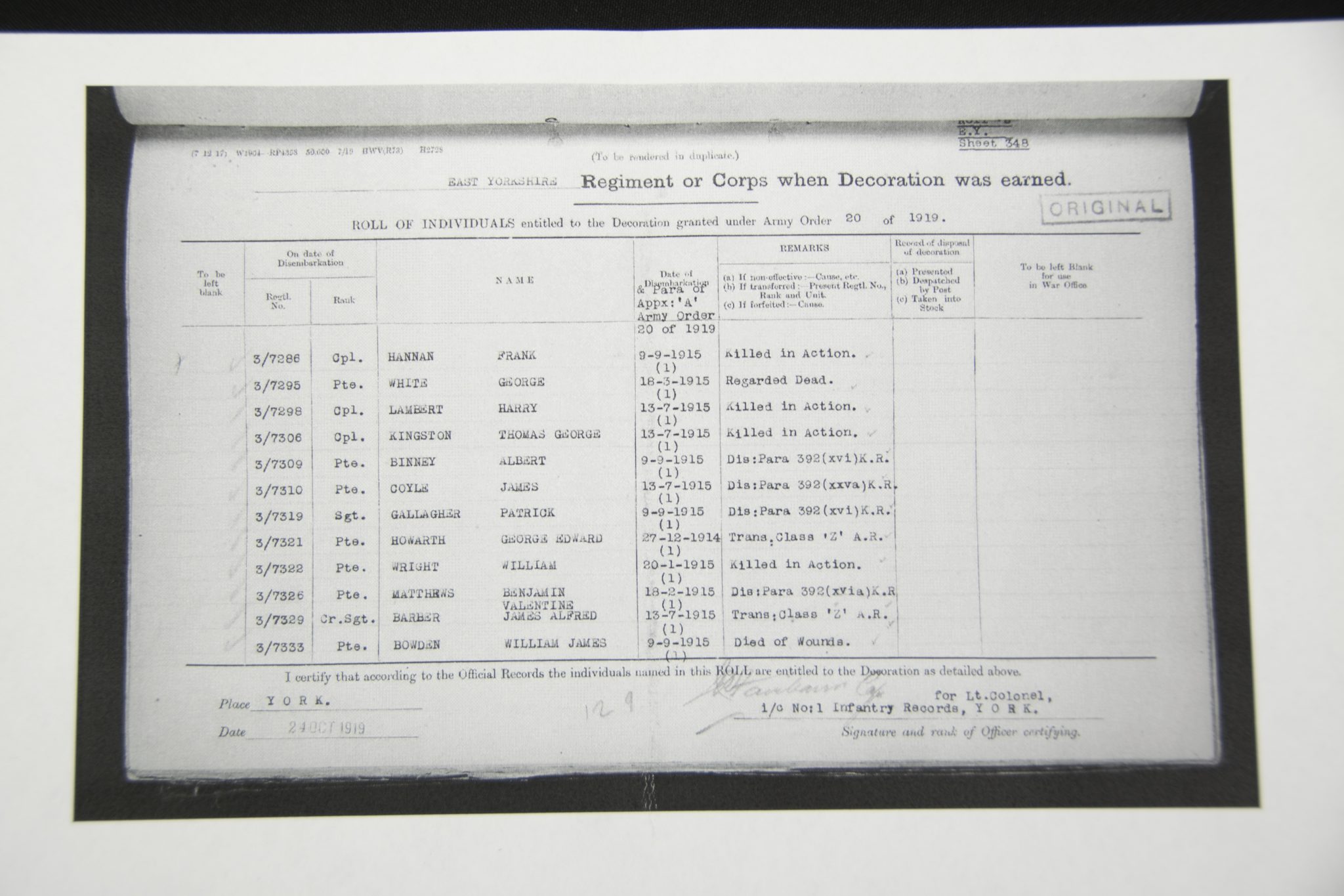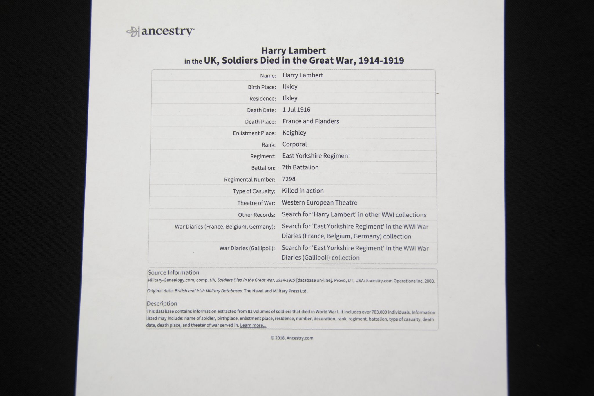 (British Army) First Day of the Somme 1 July 1916 - 1914-15 Star of Corporal H. Lambert, 7298, 7th Bn., East Yorkshire Regiment - Image 14