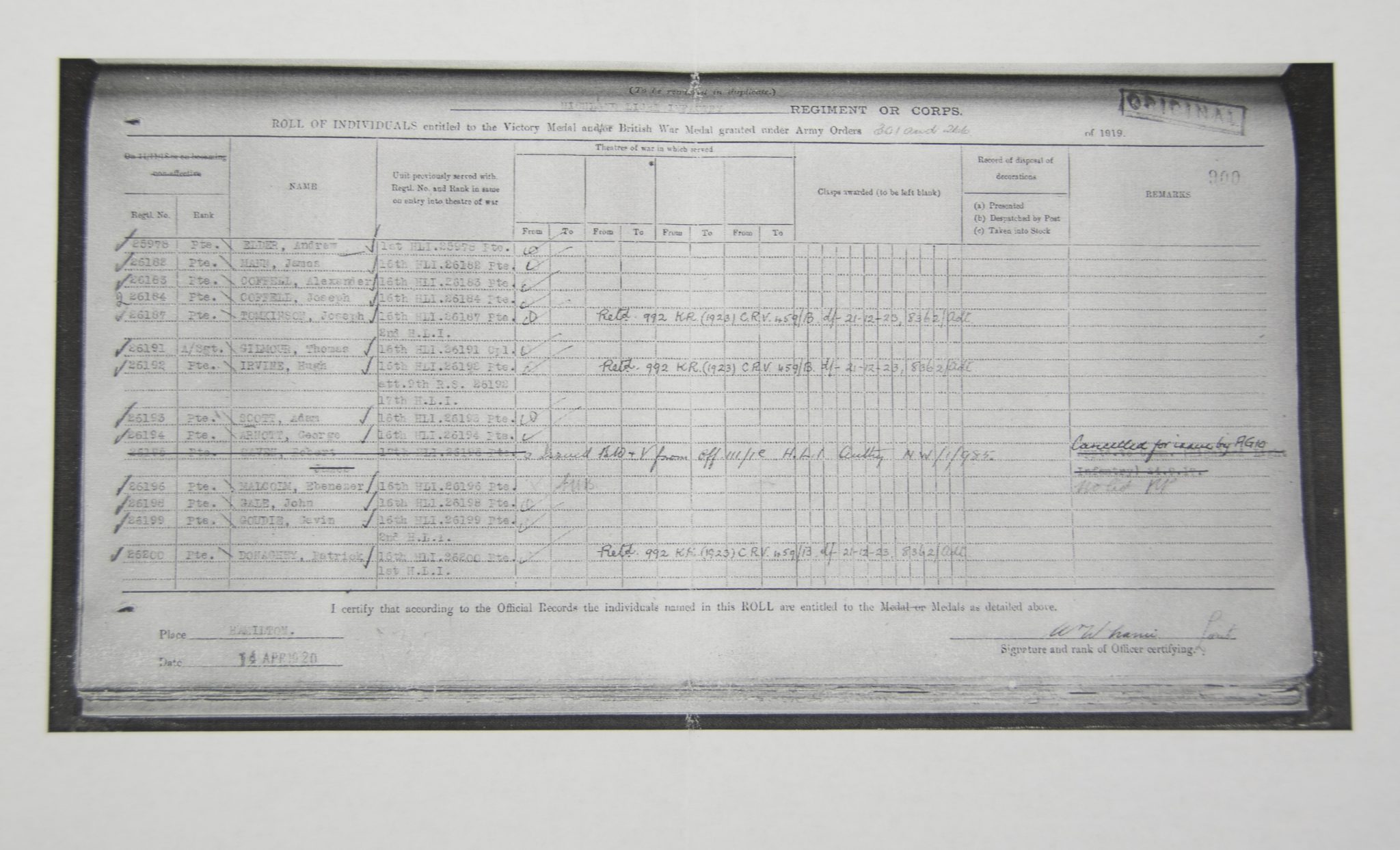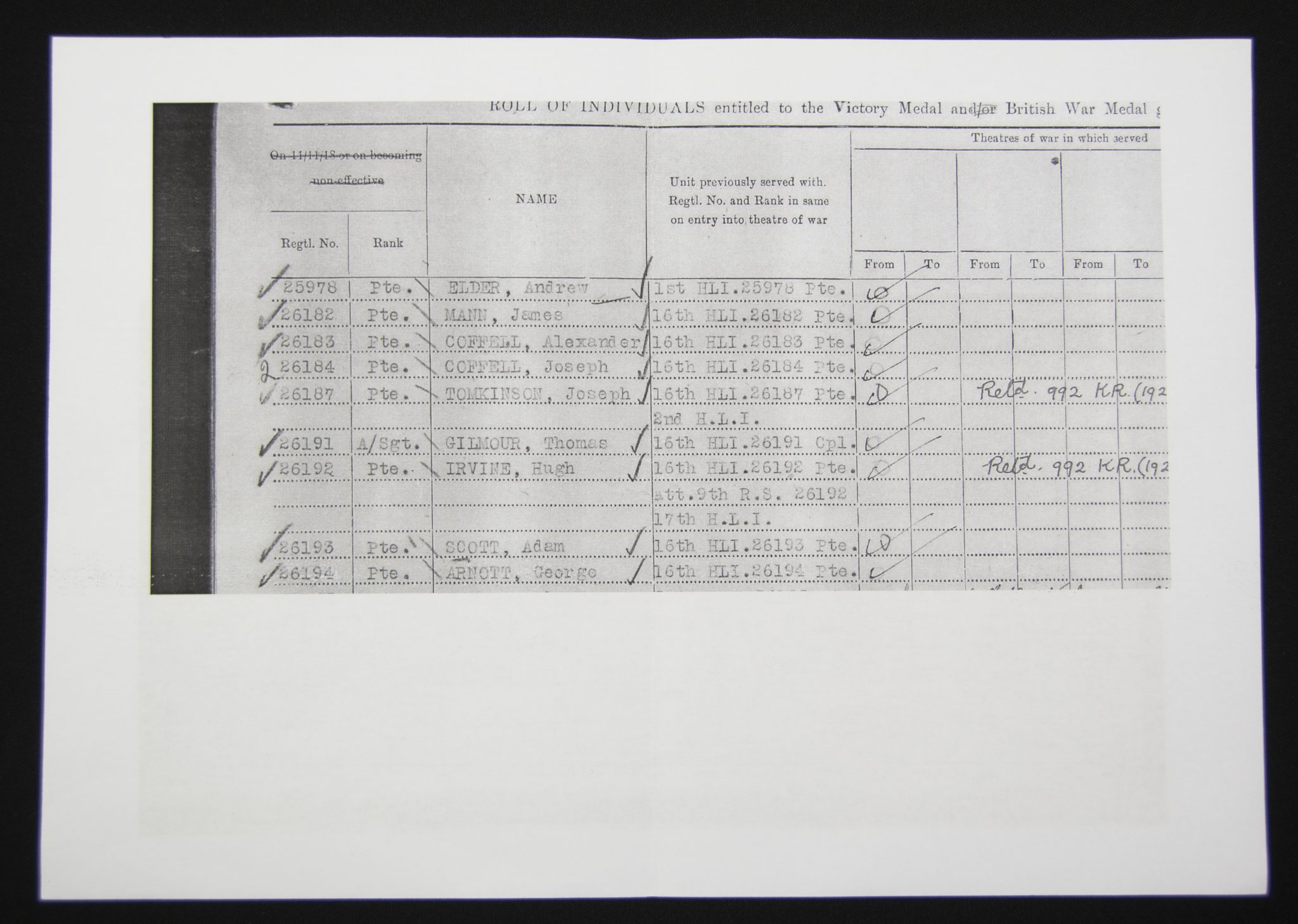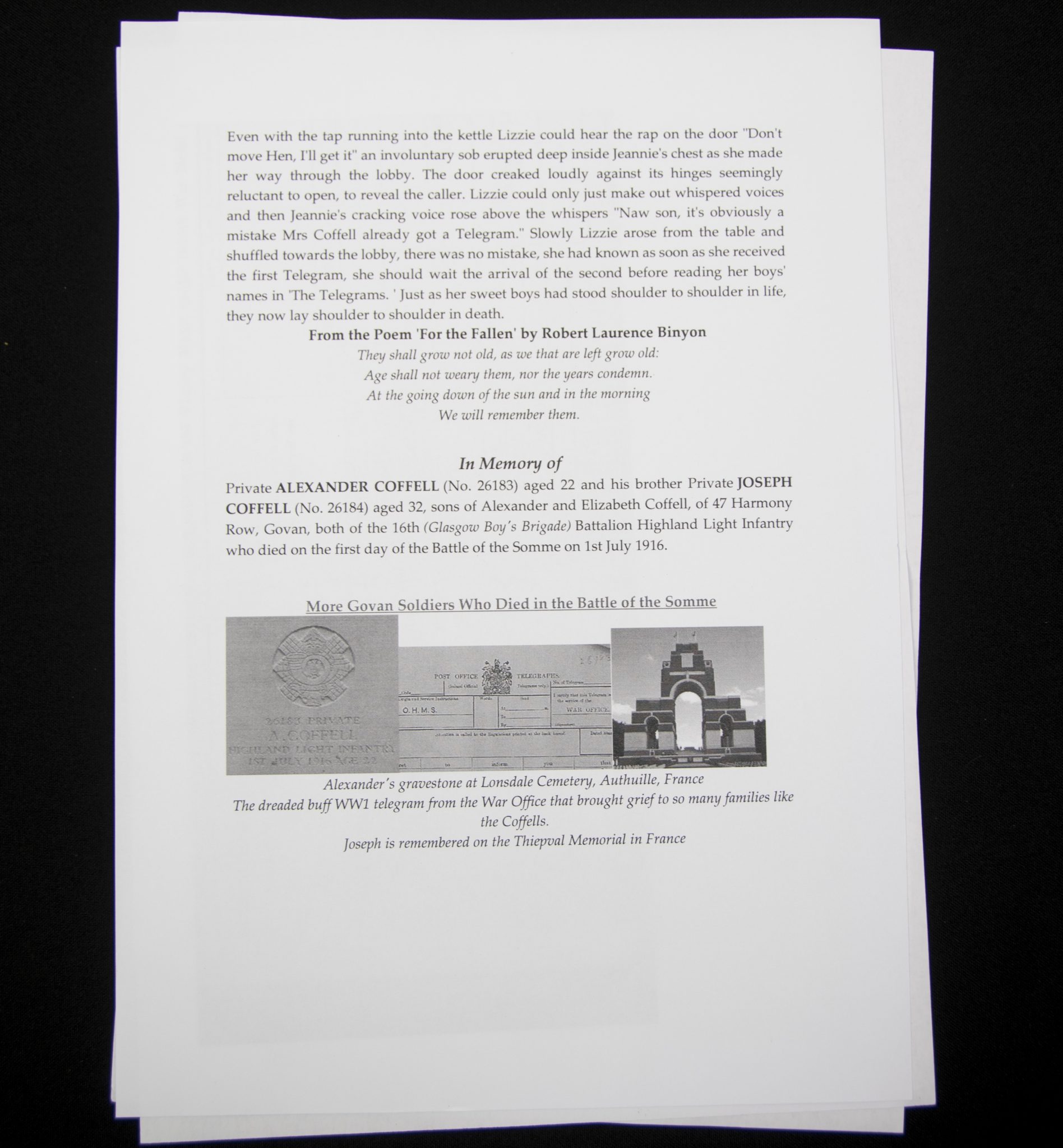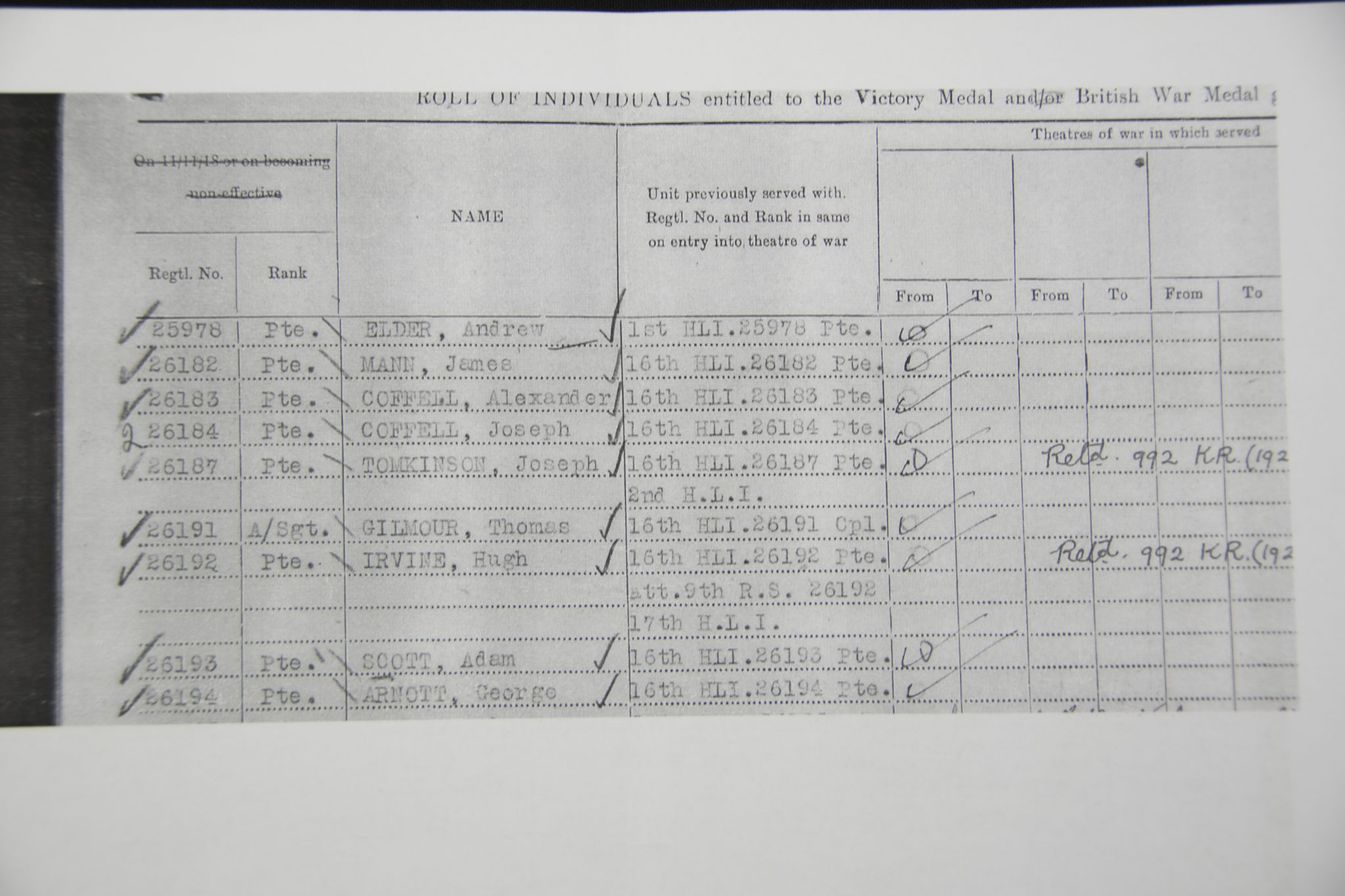 Named to Private Alexander Coffell, service number 26183, 16th Bn., Highland Light Infantry/