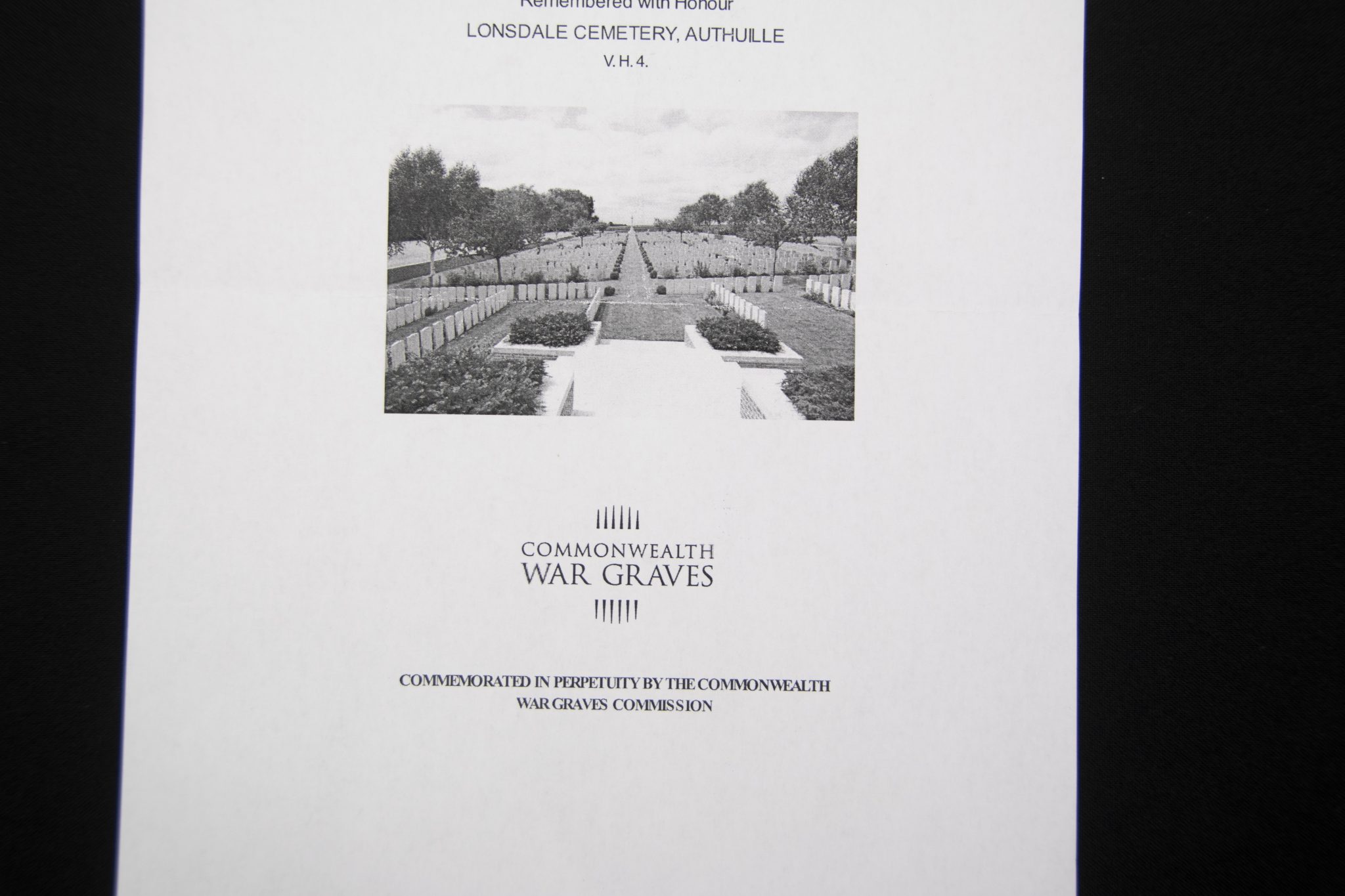Private Alexander Coffell is buried at the Lonsdale Cemetery in Authuille, in section V.H.4.