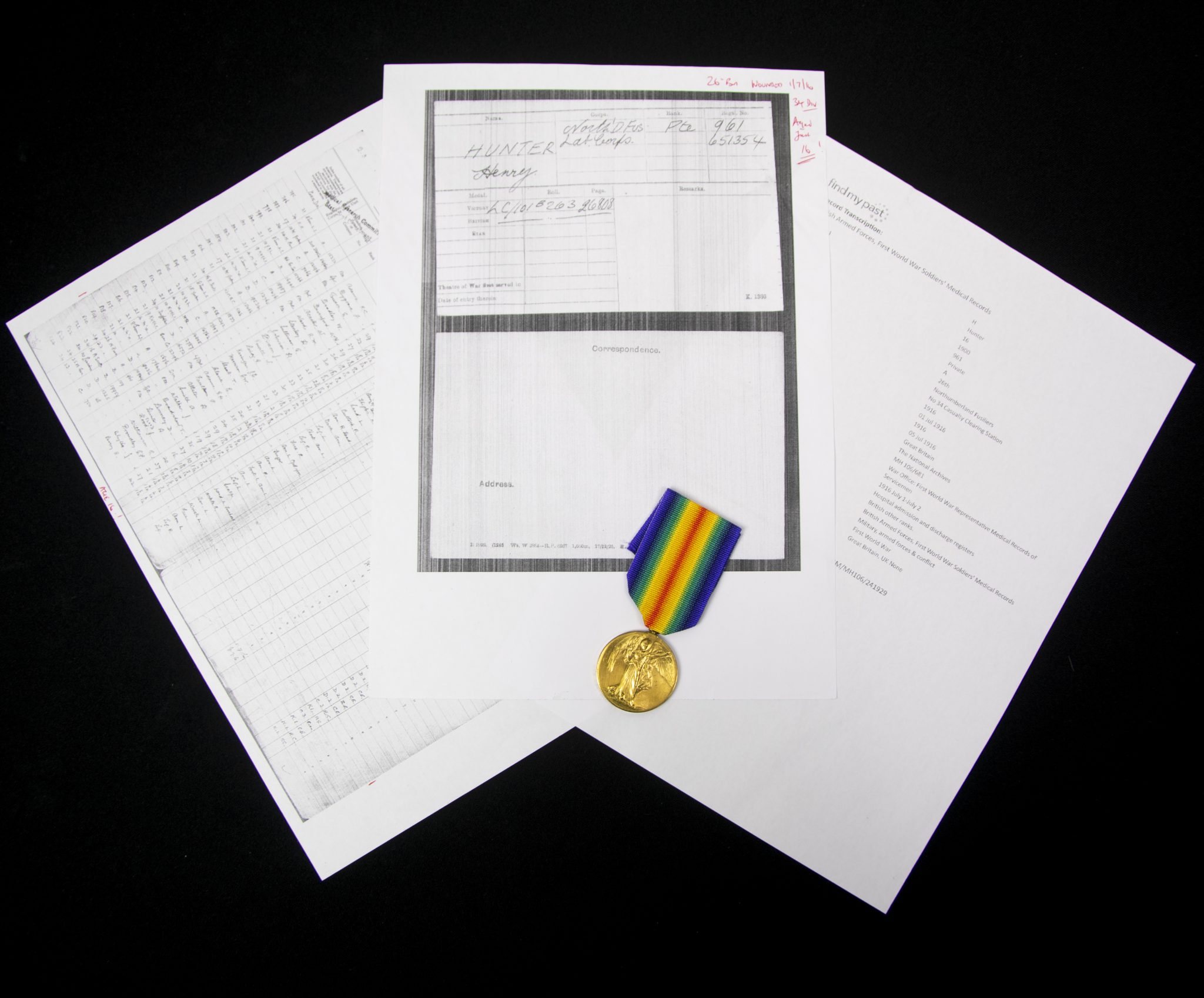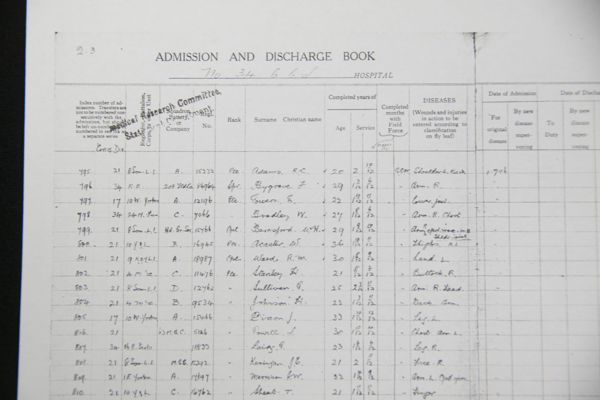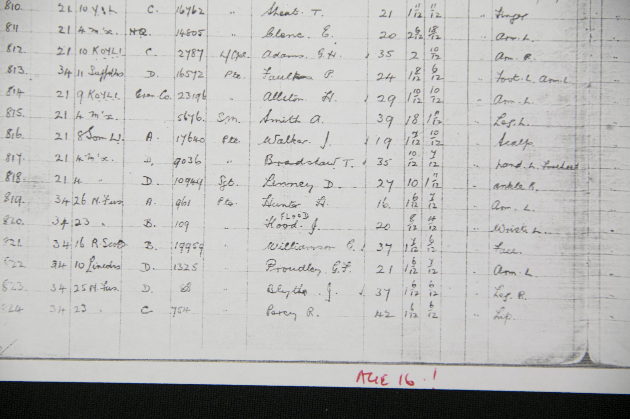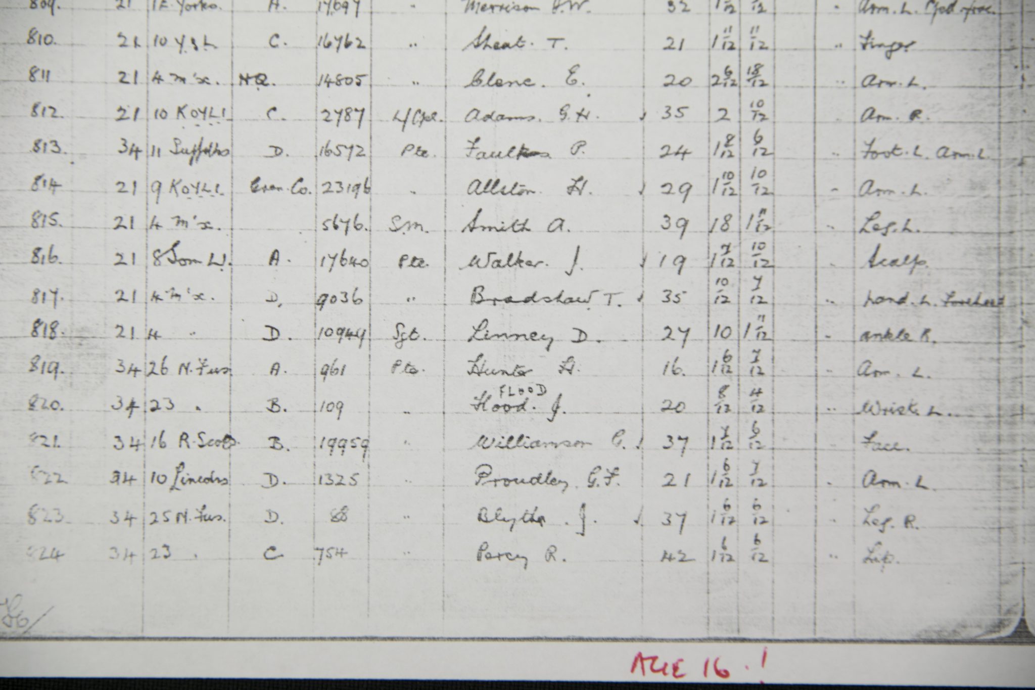 Named to Henry Hunter, who was wounded on his let arm on 1 july 1916 during the First day of the Somme Battle. He was at this time only 16 years old (!). He was sent to No.34 Casualty Clearing Station Hospital.