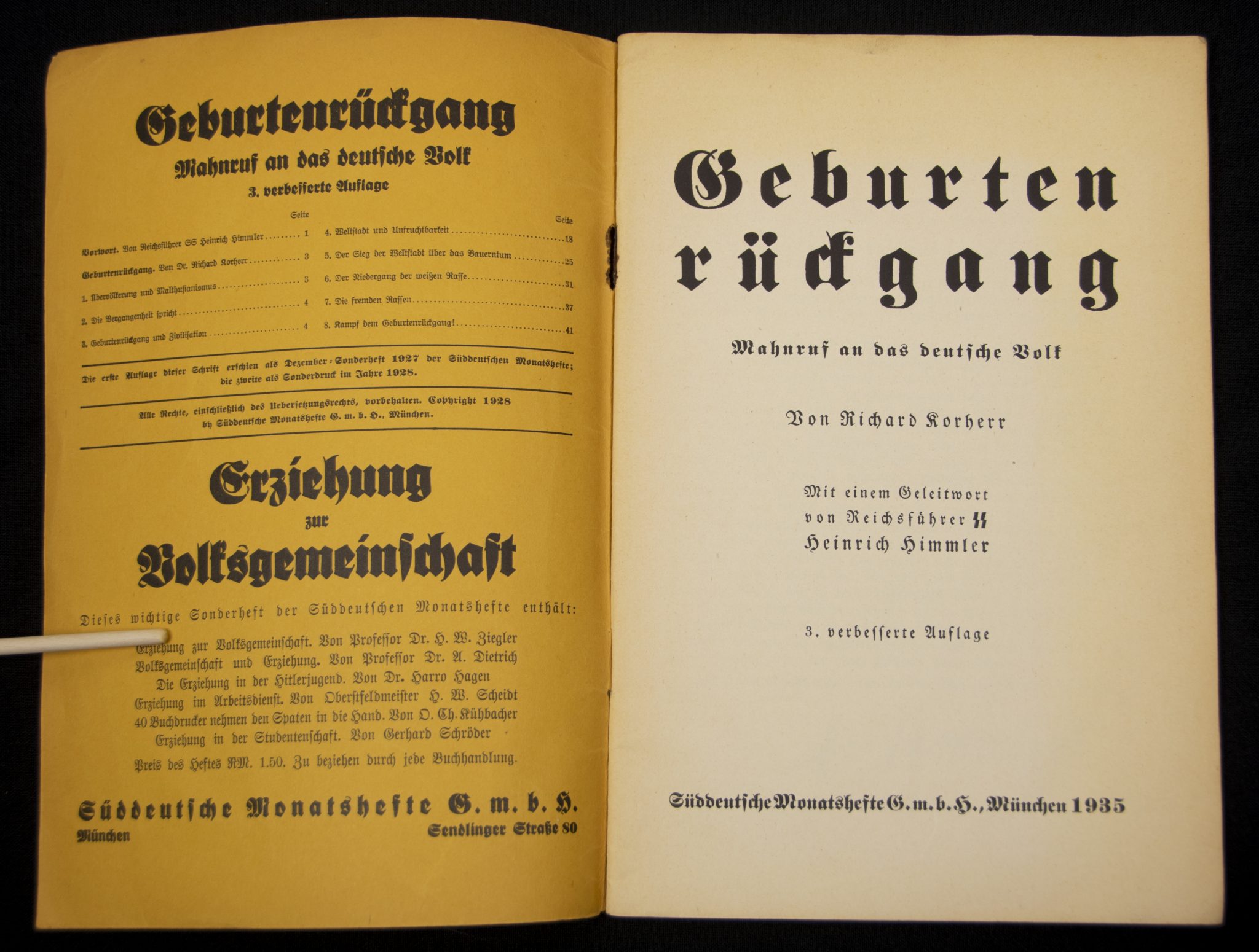 (Brochure) Richard Korherr Geburtenrückgang + Forword by RFSS Himmler (1935).