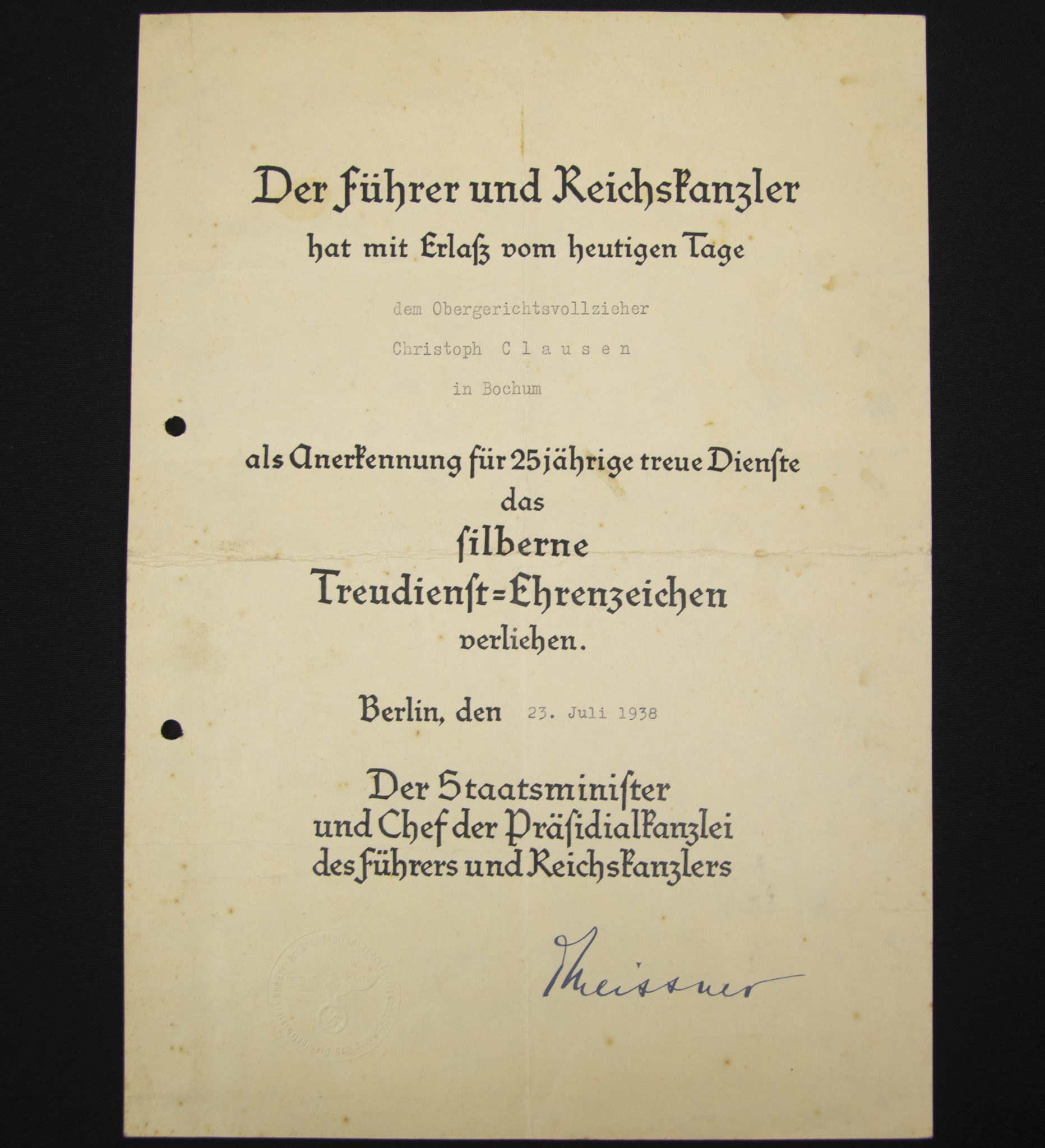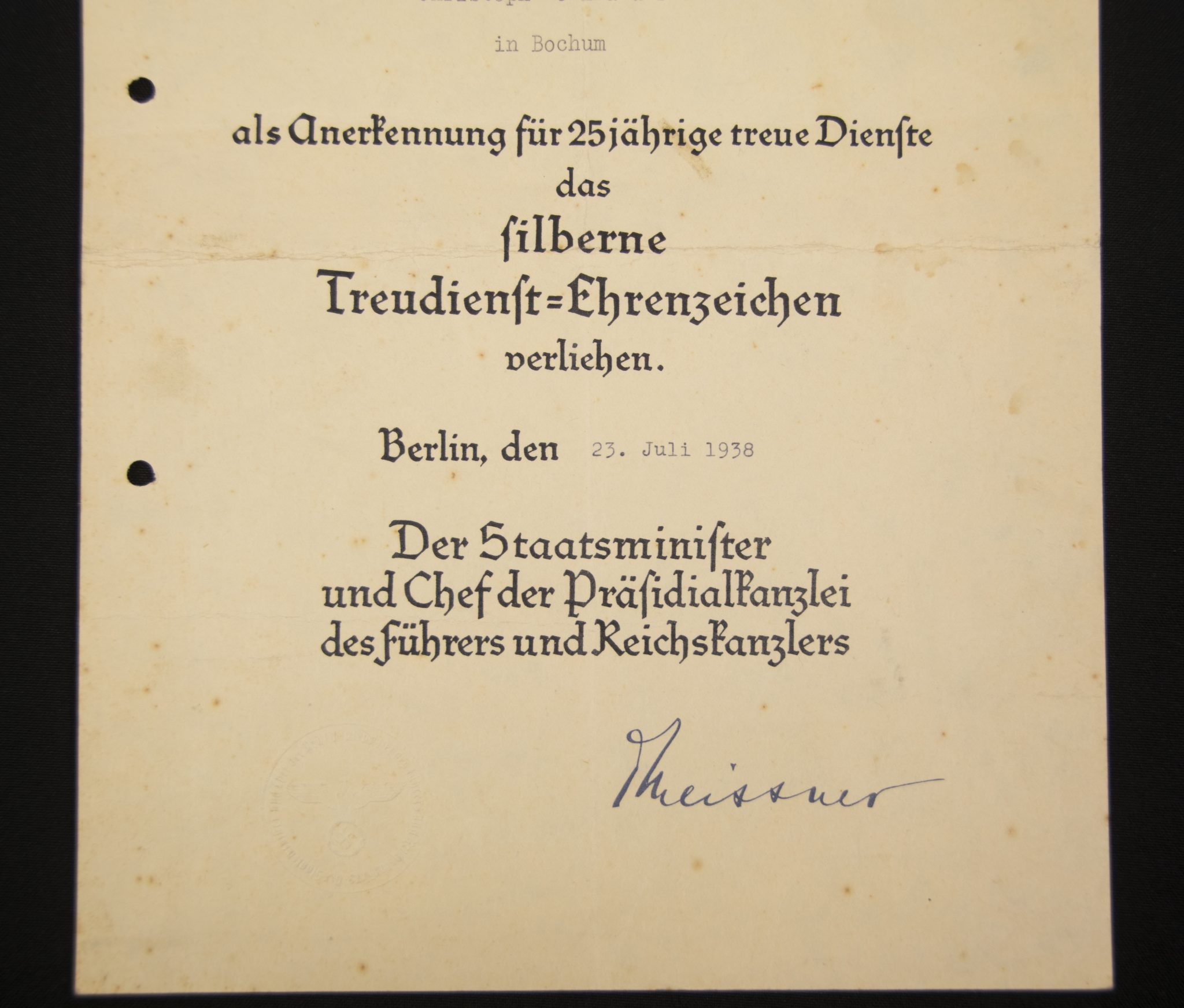 Category: Passes, Documents and Citations Tag: (Citation) 25 Jährige true Dienste das silberne Treudienst-Ehrenzeichen