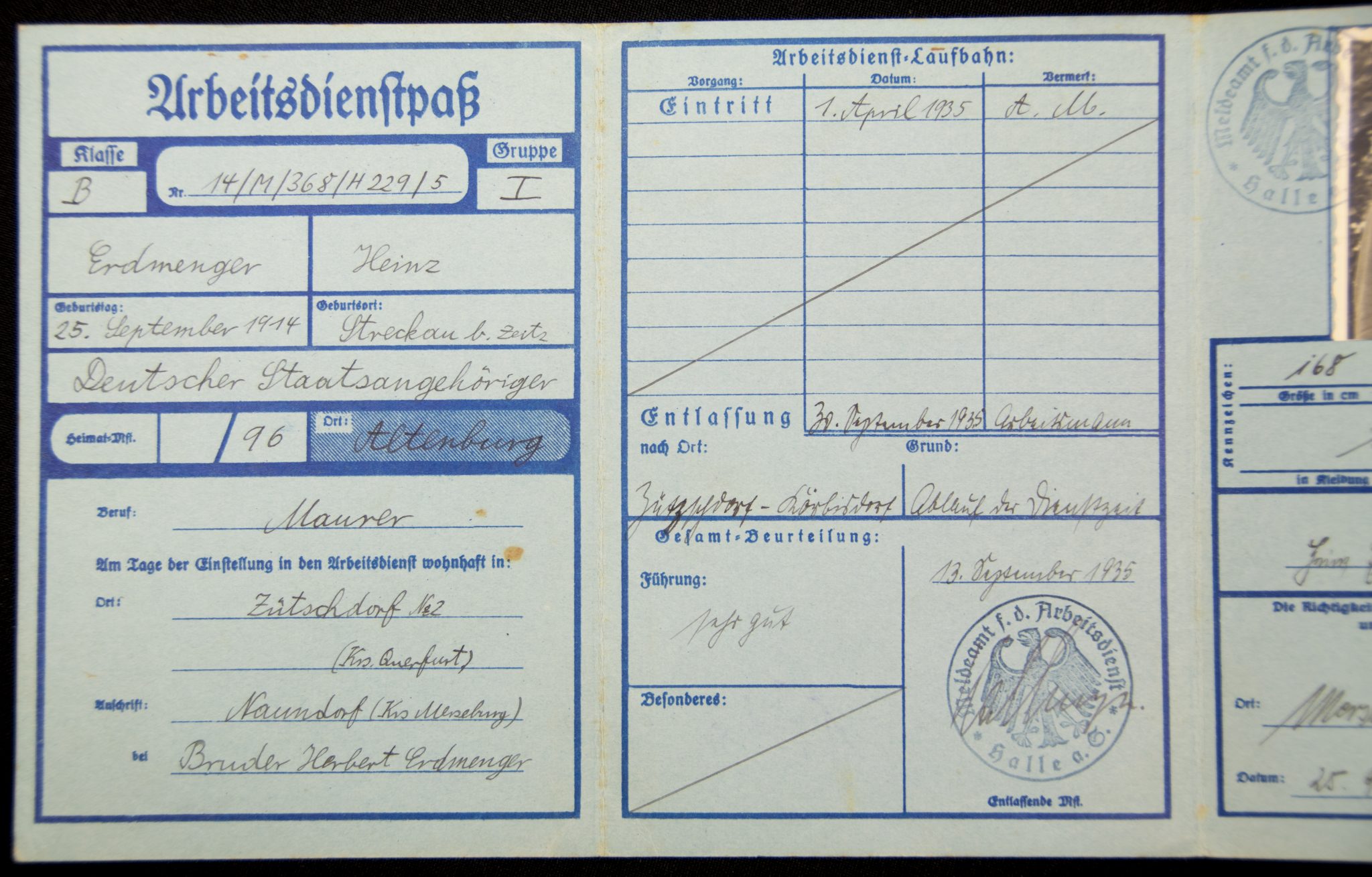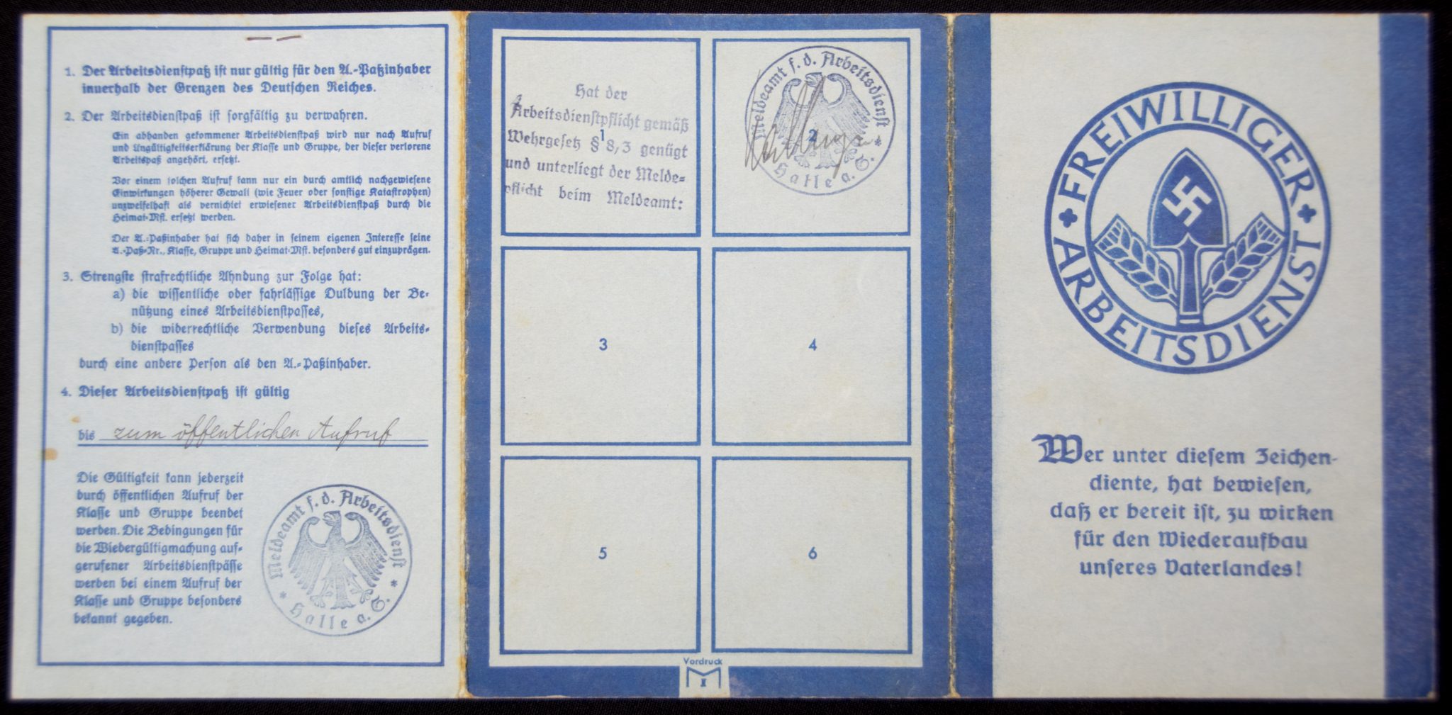 Category: Passes, Documents and Citations Tag: Freiwilliger Arbeitsdienst Arbeitspass + passphoto