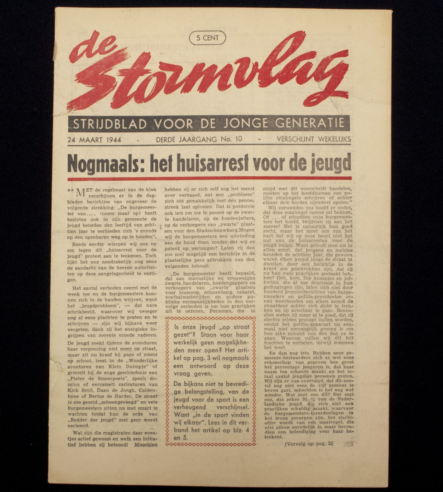 Jeugdstorm – De Stormvlag – Derde jaargang No.10 (1944).