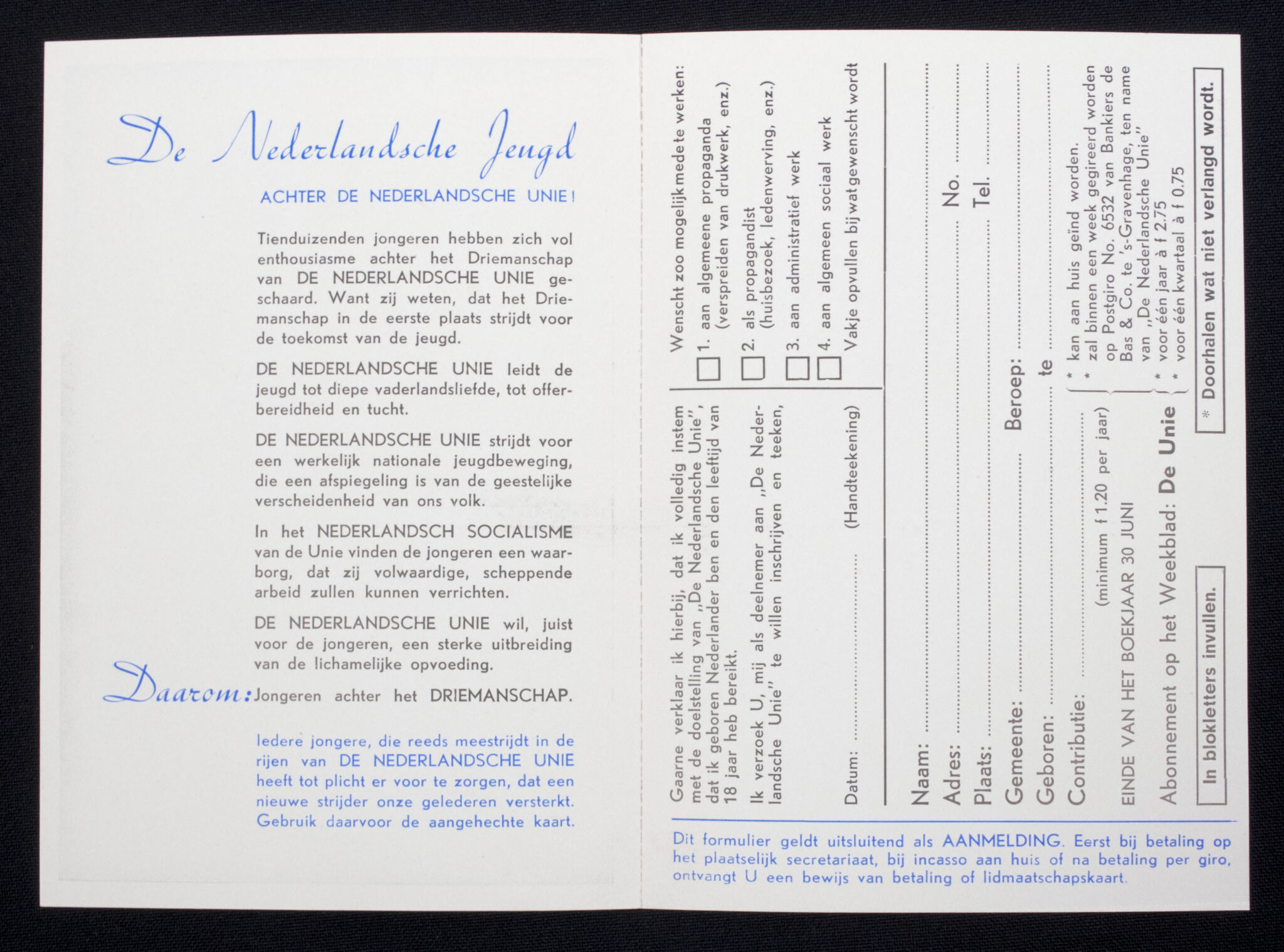Category: Passes, Documents and Citations Tag: Nederlandsche Unie - recruitment card 4