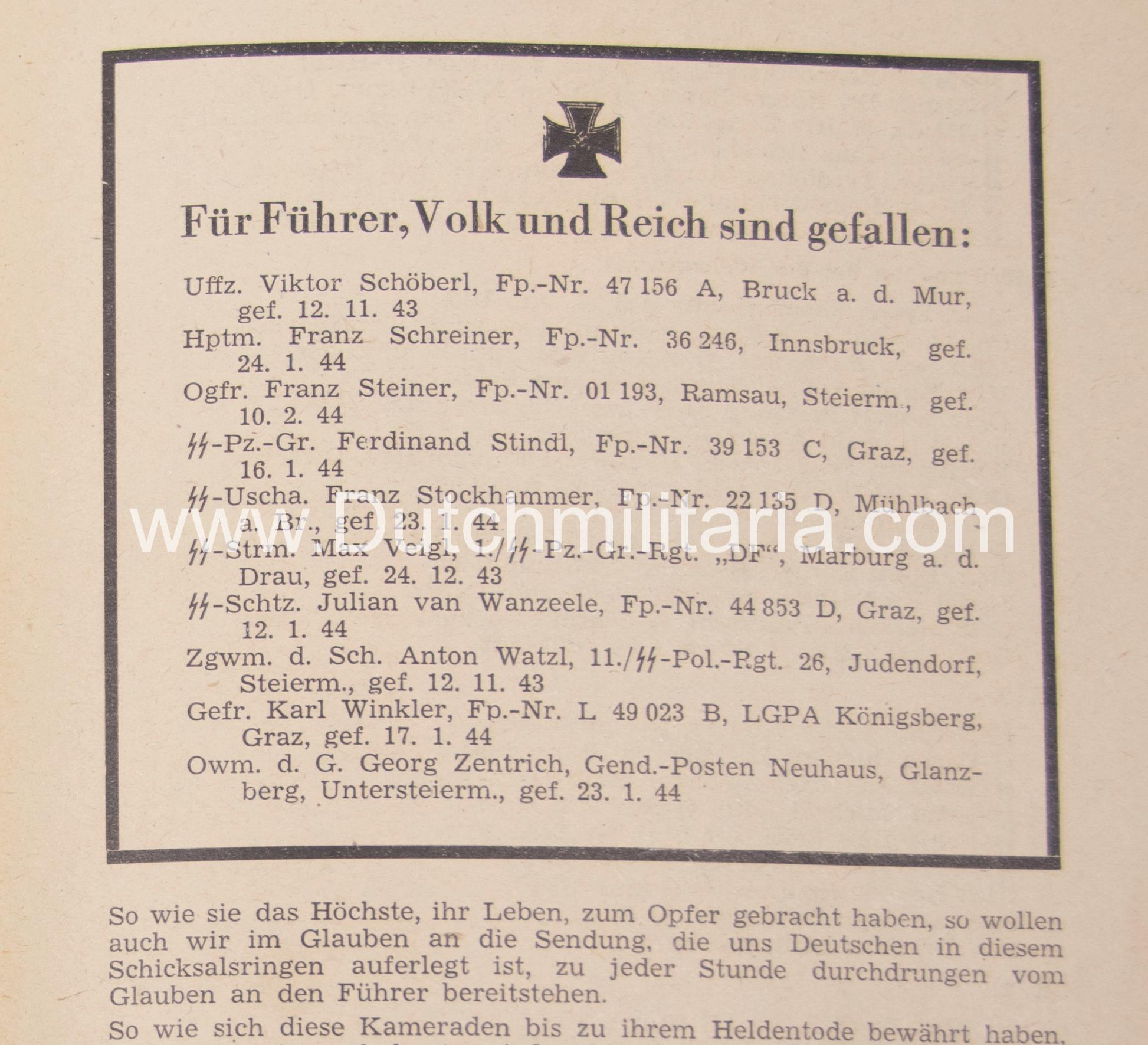 SS-Oberabschnitt Alpenland – Feldpostbrief 20 – Im April 1944.