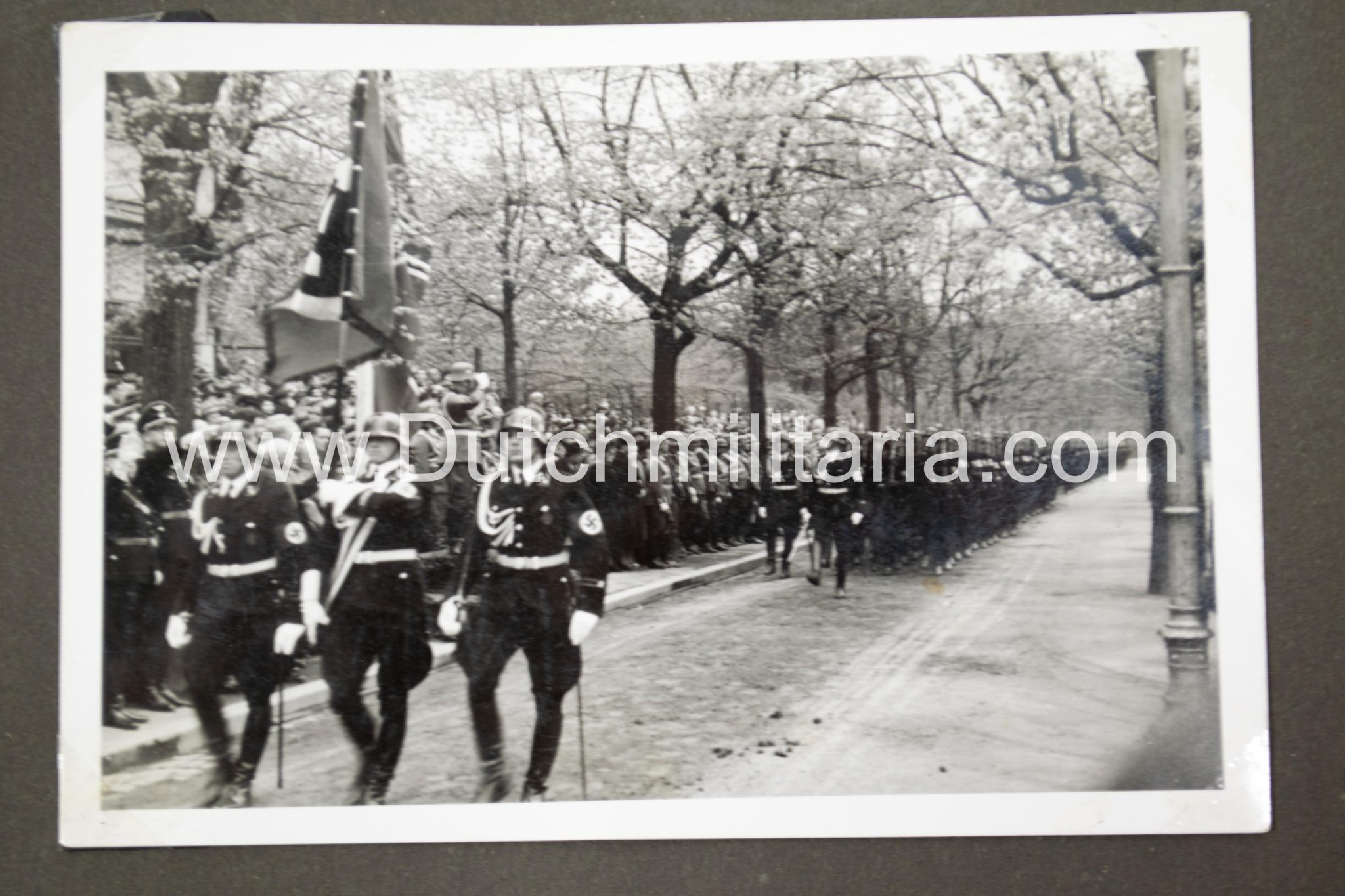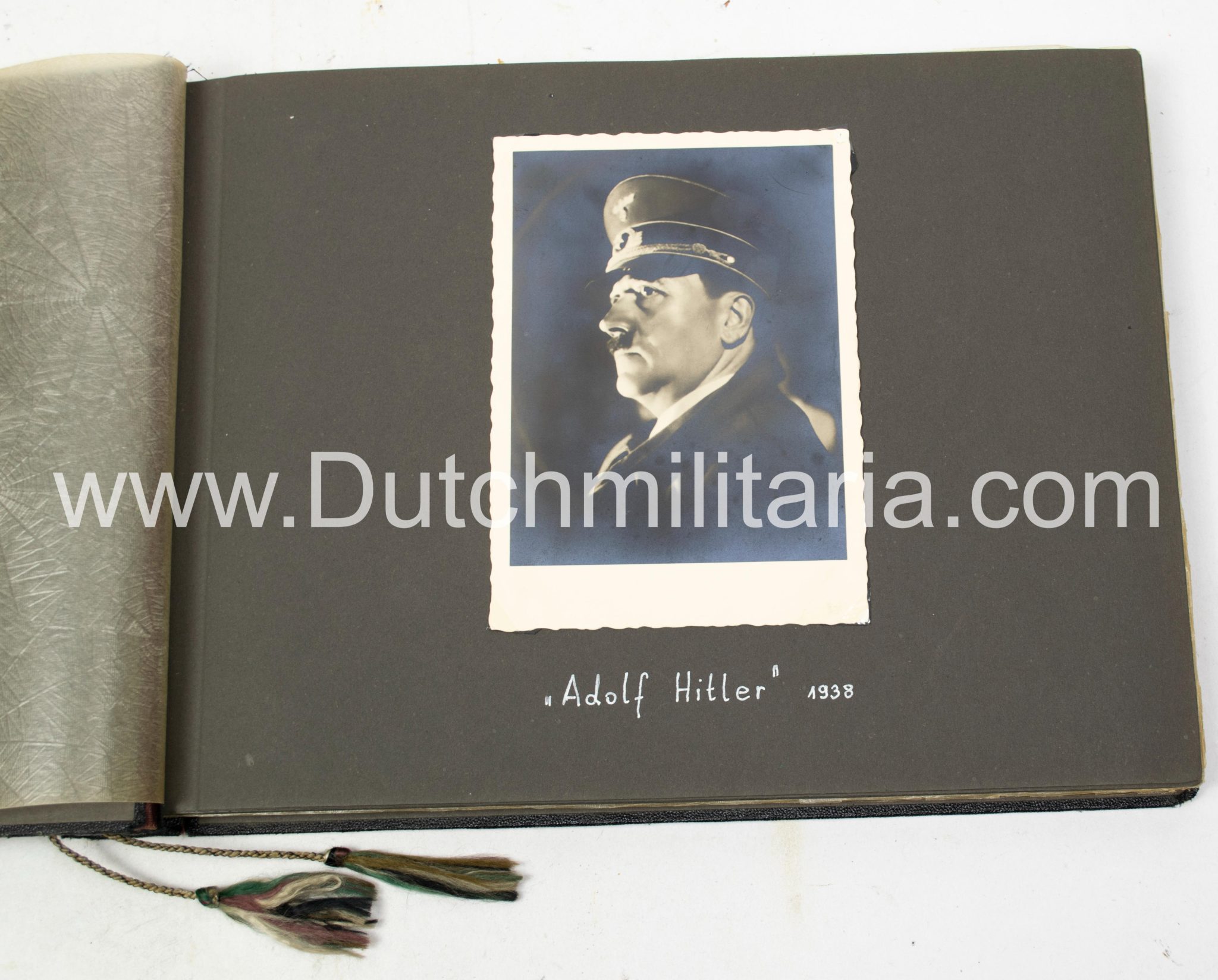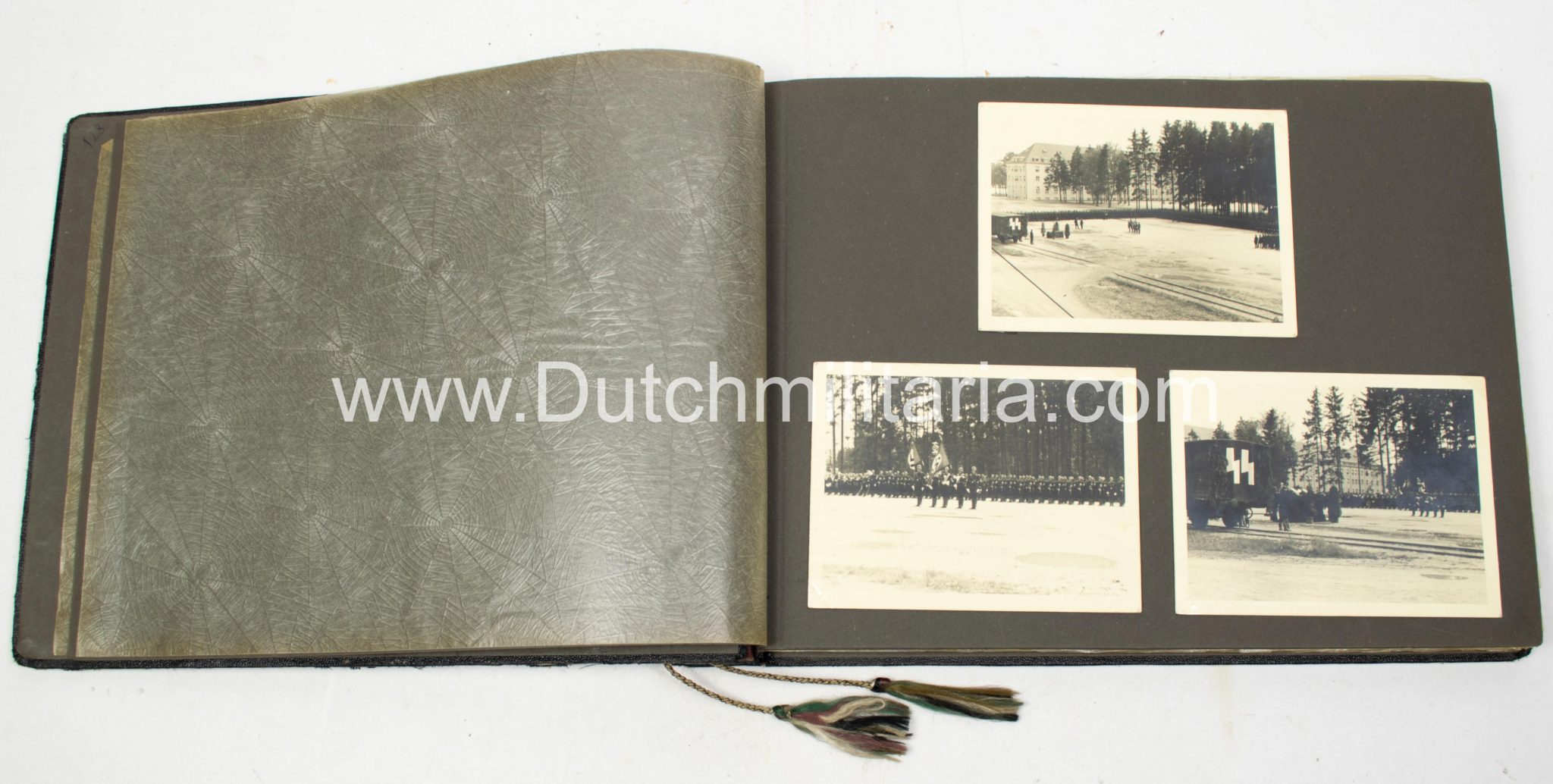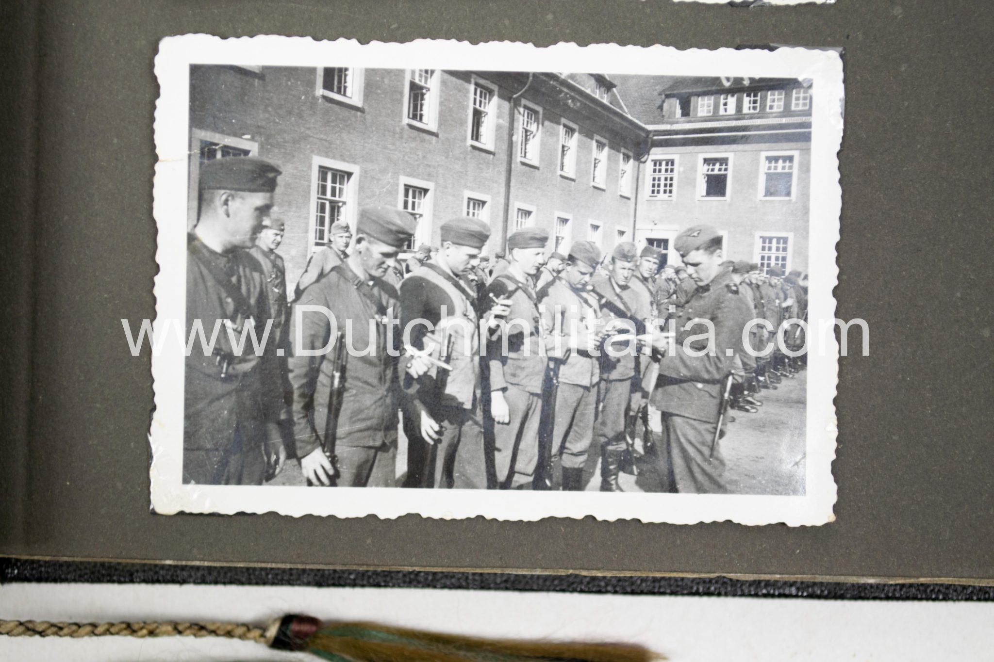 There are approximately 135 photo’s inside, almost all are interesting and military/SS related, showing uniforms, SS insignia (runes), skulls, armbands, rare sport insignia, kaserne, Feldhernnhalle, tanks, marching, etcetera. There are also two very rare privat photo’s of Heinrichh Himmler. There is too much to name it all. I tried to show as many close up photo’s as possible to show the content. As a whole this is very hard to find SS timecapsule. Most abums always contain a plethora of unrelated photo’s, this album however when browsing through it keeps showing interesting photo’s till the end.
