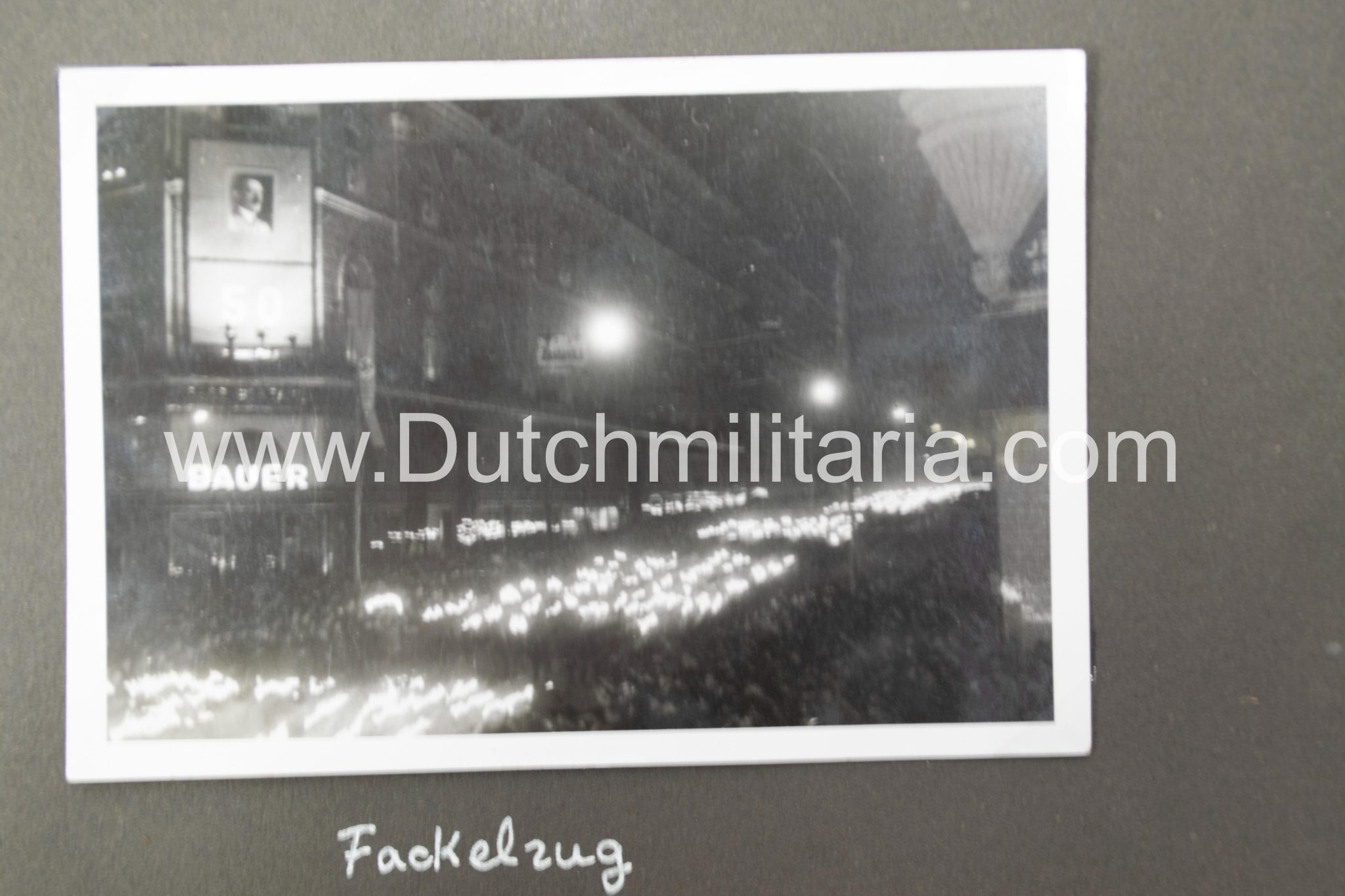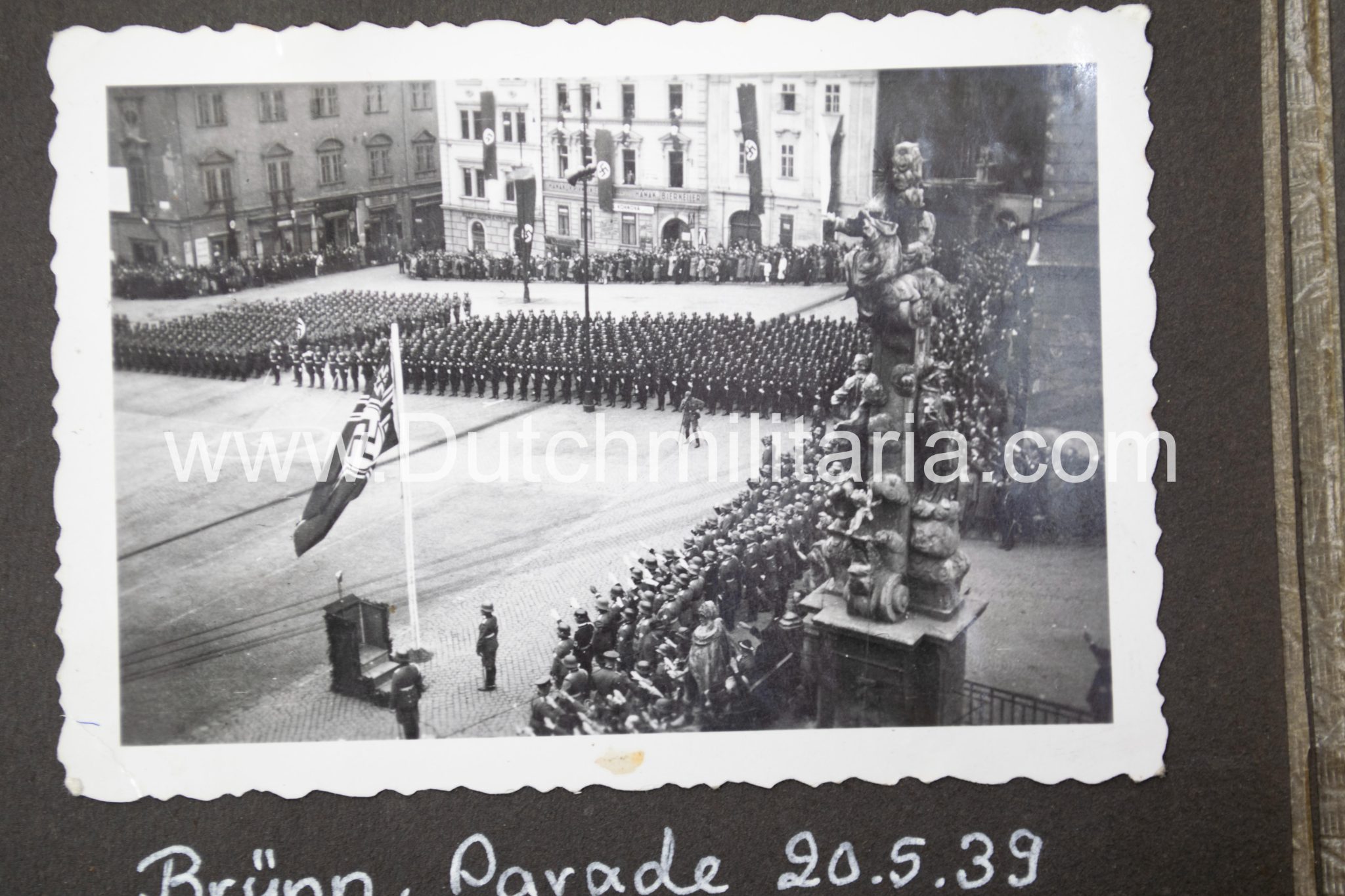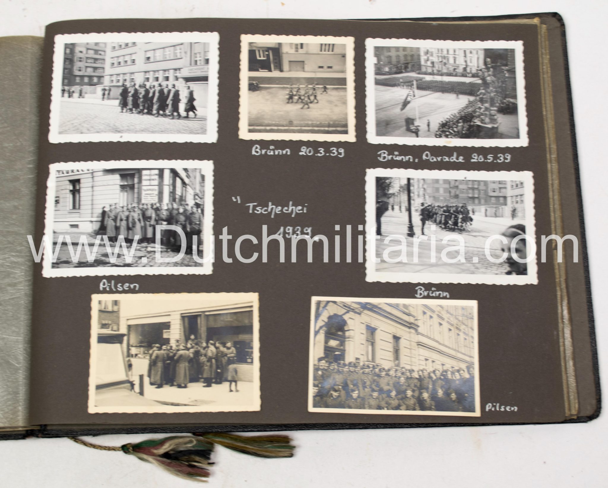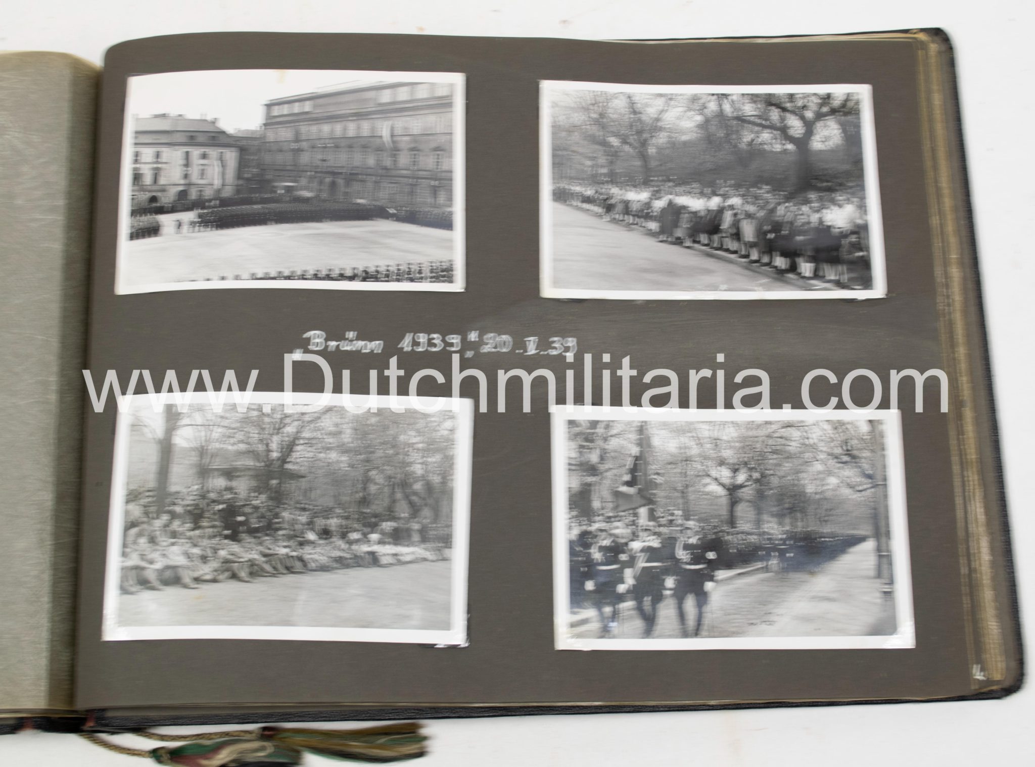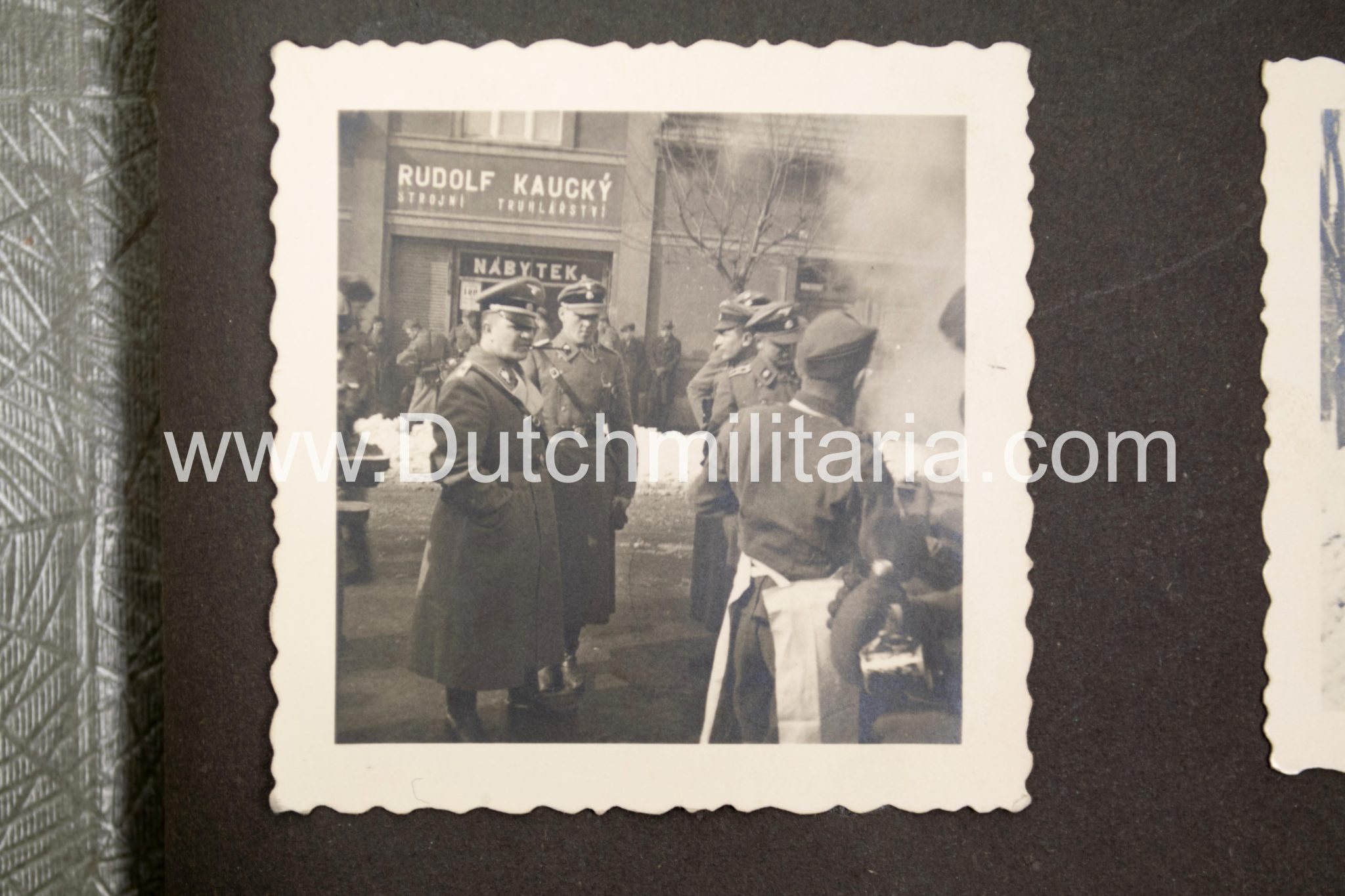 There are approximately 135 photo’s inside, almost all are interesting and military/SS related, showing uniforms, SS insignia (runes), skulls, armbands, rare sport insignia, kaserne, Feldhernnhalle, tanks, marching, etcetera. There are also two very rare privat photo’s of Heinrichh Himmler. There is too much to name it all. I tried to show as many close up photo’s as possible to show the content. As a whole this is very hard to find SS timecapsule. Most abums always contain a plethora of unrelated photo’s, this album however when browsing through it keeps showing interesting photo’s till the end.