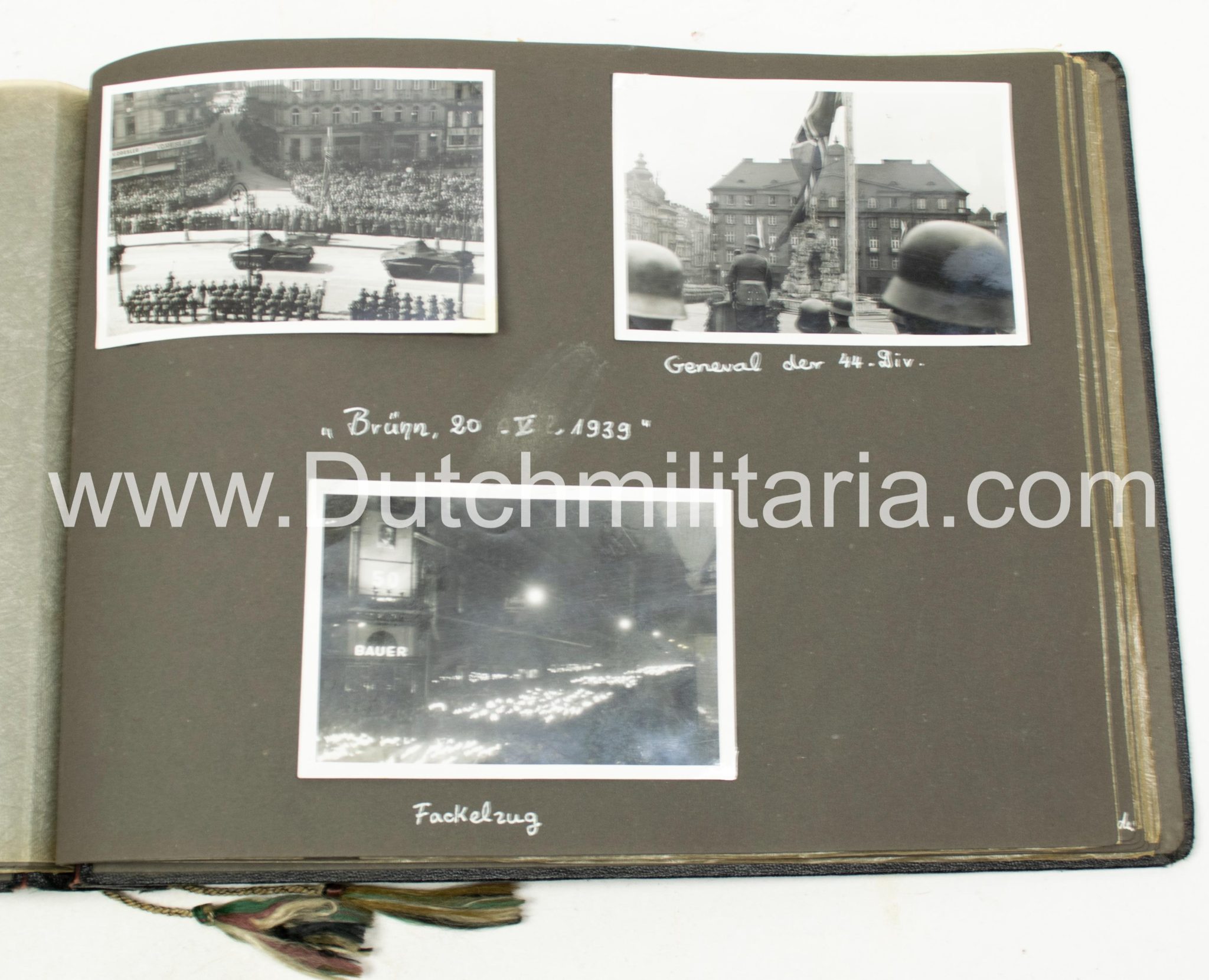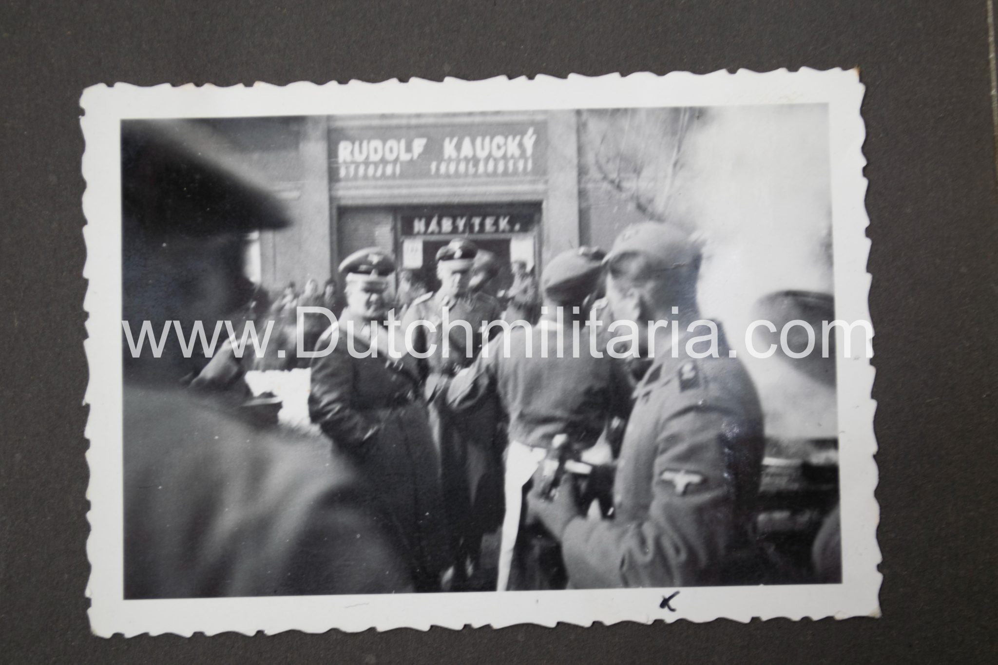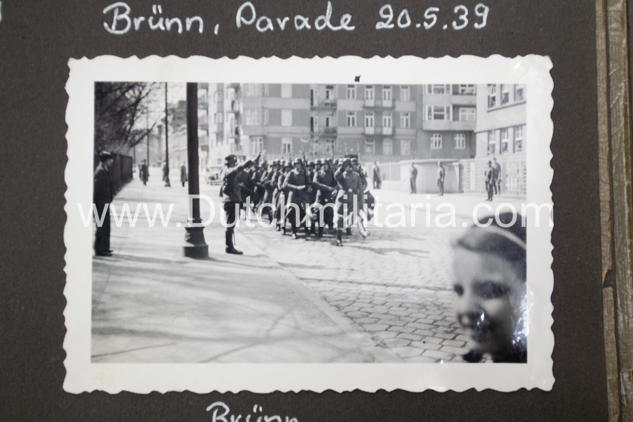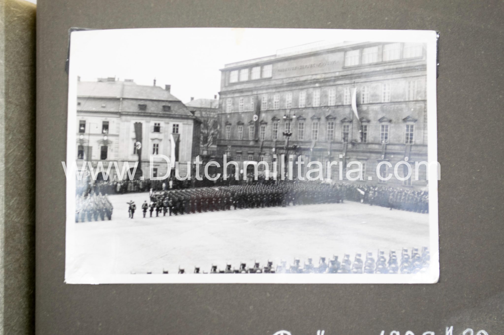 There are approximately 135 photo’s inside, almost all are interesting and military/SS related, showing uniforms, SS insignia (runes), skulls, armbands, rare sport insignia, kaserne, Feldhernnhalle, tanks, marching, etcetera. There are also two very rare privat photo’s of Heinrichh Himmler. There is too much to name it all. I tried to show as many close up photo’s as possible to show the content. As a whole this is very hard to find SS timecapsule. Most abums always contain a plethora of unrelated photo’s, this album however when browsing through it keeps showing interesting photo’s till the end.